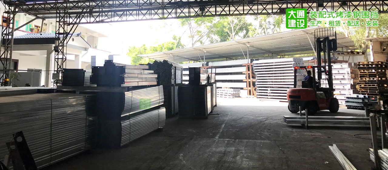 2017年深圳市大通建設發展有限公司投資大量資金,在東莞市建立了新型裝配式鋼結構圍擋加工生產基地,占地面積約2萬平米,是目前整個廣東地區規模最大最全的鋼結構圍擋生產基地。